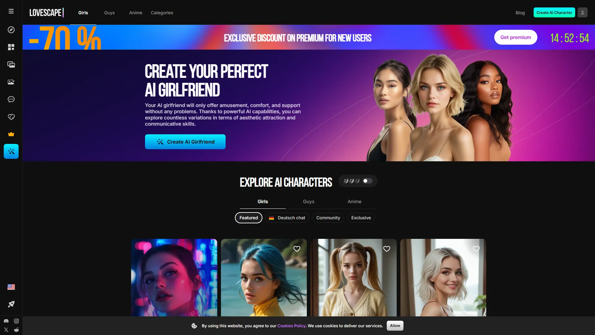 - Customization: Users can create their AI girlfriend from scratch, choosing her appearance, voice, personality, interests, and behavior.