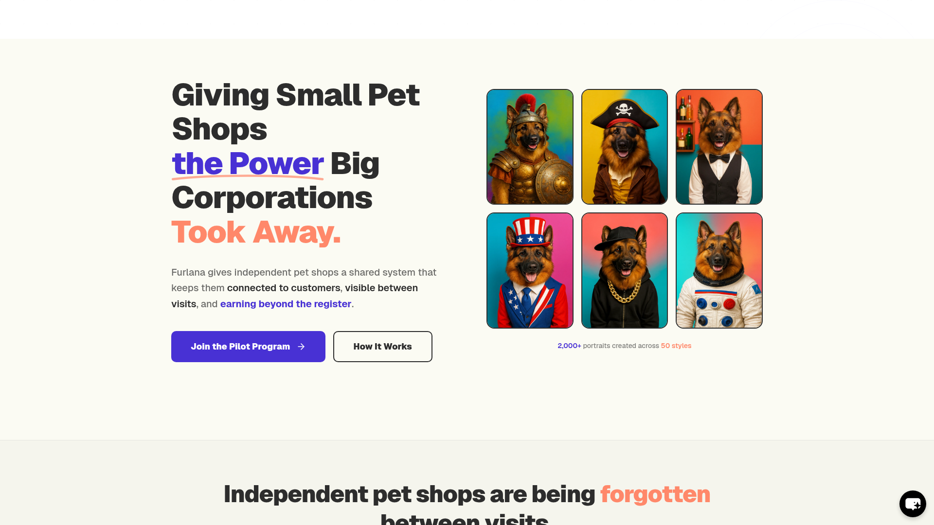 Furlana is a digital platform for independent pet shops that combines shop-branded AI pet portrait experiences, automated newsletters, and passive revenue tools. Its stated goal is to help smaller pet retailers stay visible between store visits, keep customers engaged, and create income beyond in-store transactions.
