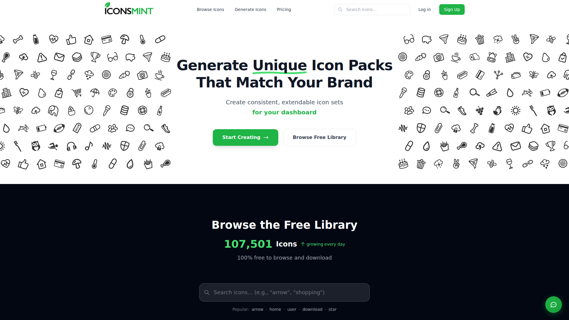 IconsMint is an AI-based icon generation platform for designers and developers who need consistent icon packs for products such as dashboards, mobile apps, SaaS interfaces, websites, and startup branding. It combines a large free icon library with a text-driven workflow for generating new icon sets and extending existing ones.