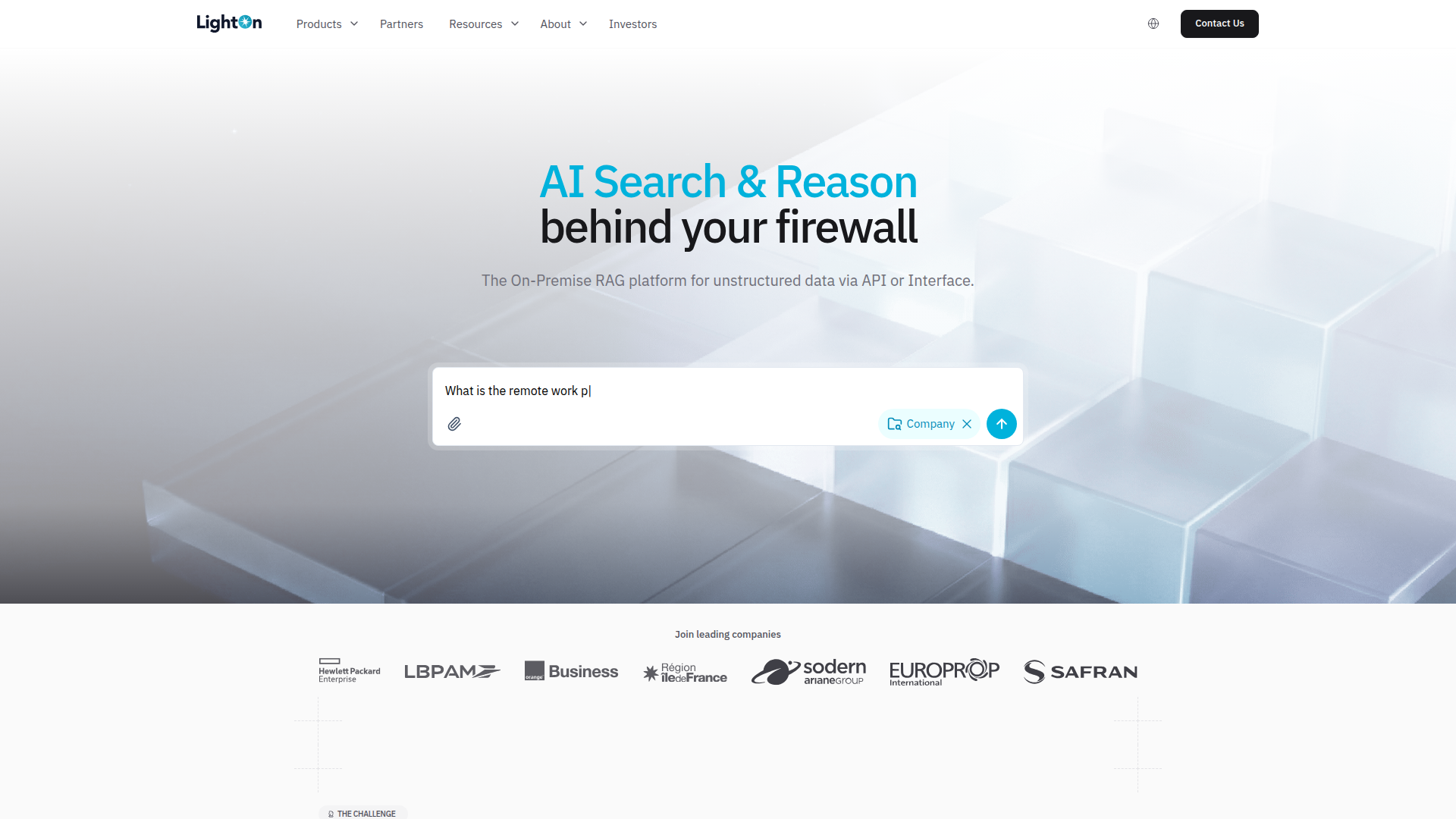 LightOn offers an enterprise AI search and reasoning platform designed to run behind a company’s firewall. It is positioned as an on-premise or sovereign deployment option for organizations that need retrieval-augmented generation (RAG) over unstructured data while keeping documents, queries, and access controls inside their own environment.