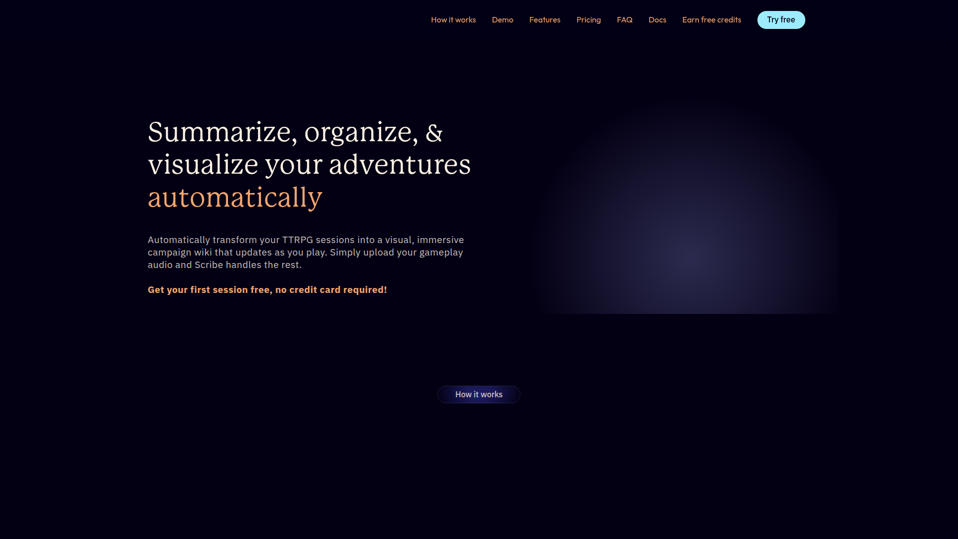 The product appears aimed at game masters and groups who want less manual note-taking and better continuity across long-running campaigns. Its positioning is likely a campaign memory and organization layer for TTRPG play, with shared read access for players and tools to edit, rewrite, search, and visualize campaign content over time.