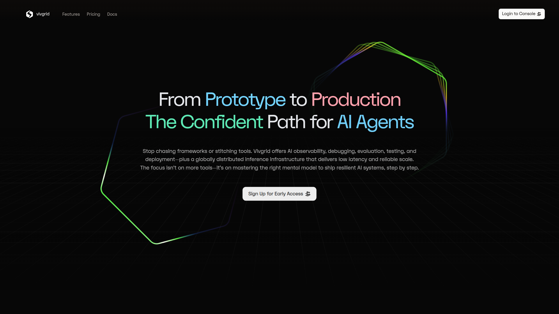Vivgrid is an AI agent infrastructure platform designed to help teams move from prototype to production with more control over how agents are built, evaluated, deployed, and monitored. Based on the page, it combines observability, debugging, evaluation, testing, guardrails, orchestration, memory, and deployment on a globally distributed inference network.