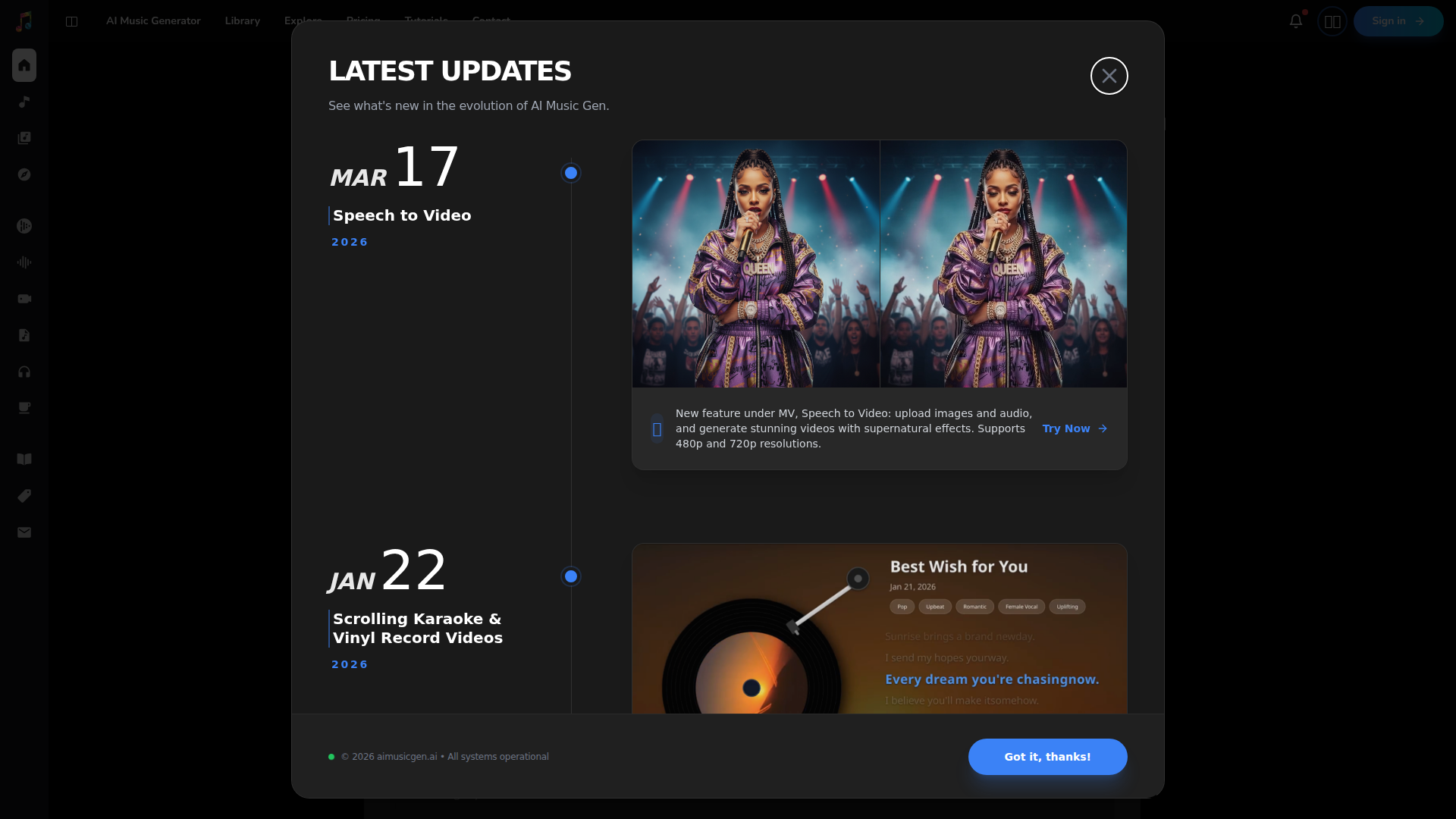 - Opciones de salida vocal e instrumental: Los usuarios pueden elegir entre canciones vocales y pistas instrumentales, lo que amplía los casos de uso desde canciones completas hasta música de fondo.