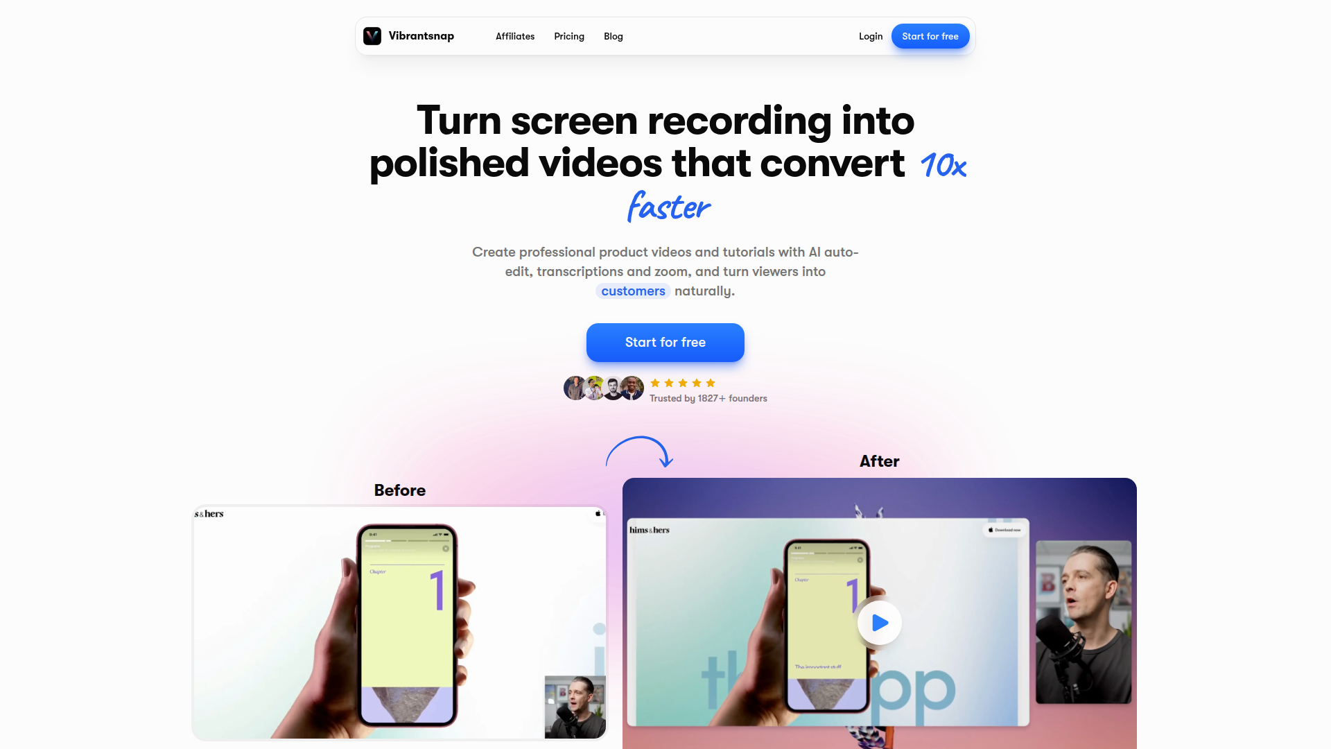 Vibrantsnap es un grabador de pantalla y creador de videos de demostración con IA para crear videos de producto, tutoriales, presentaciones y probablemente recorridos orientados a ventas. Está dirigido a fundadores, creadores y equipos que quieren grabar o importar un video, aplicar edición automatizada y publicar un recurso más pulido sin dedicar mucho tiempo a la posproducción manual.