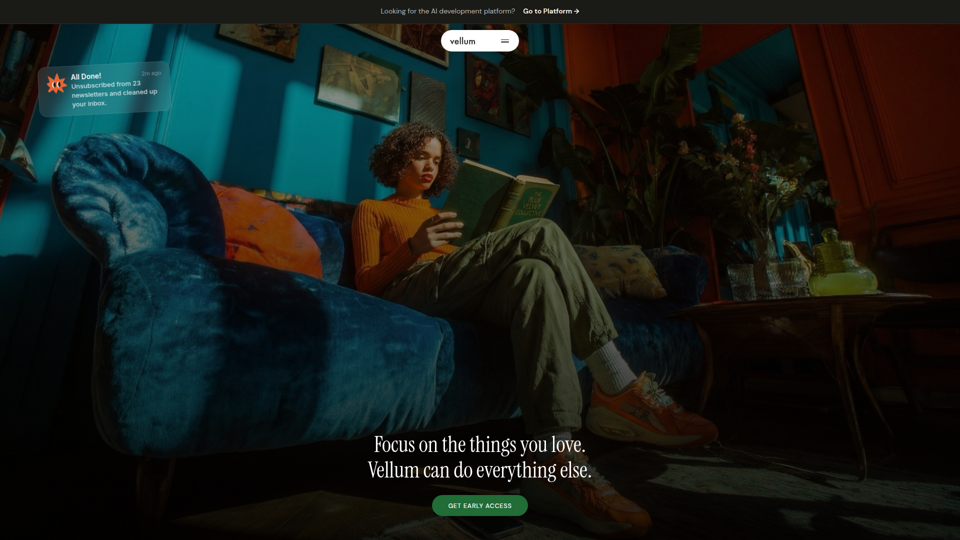 Vellum es un asistente personal de IA de escritorio para macOS e iOS que se conecta a tus aplicaciones, comprende tu contexto y ayuda a las personas a gestionar el correo electrónico, la programación, las tareas web, la programación y otras acciones desde una sola conversación. Para trabajadores del conocimiento, fundadores y desarrolladores, puede reducir el cambio repetitivo entre aplicaciones y el trabajo administrativo, mientras mantiene la aprobación humana para las acciones externas.
