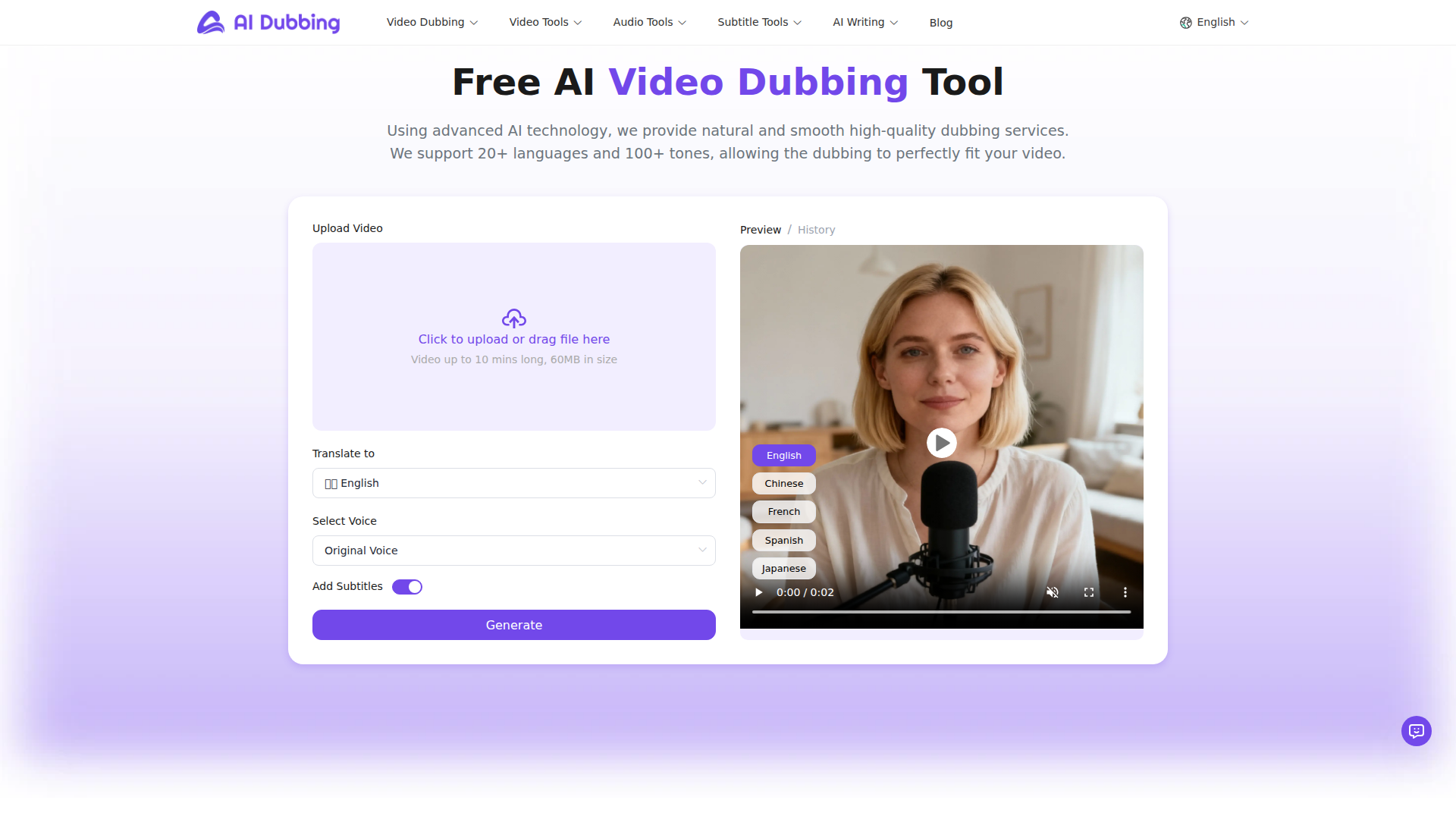 Doublage IA - Outil gratuit de doublage vidéo en ligne (sans inscription)