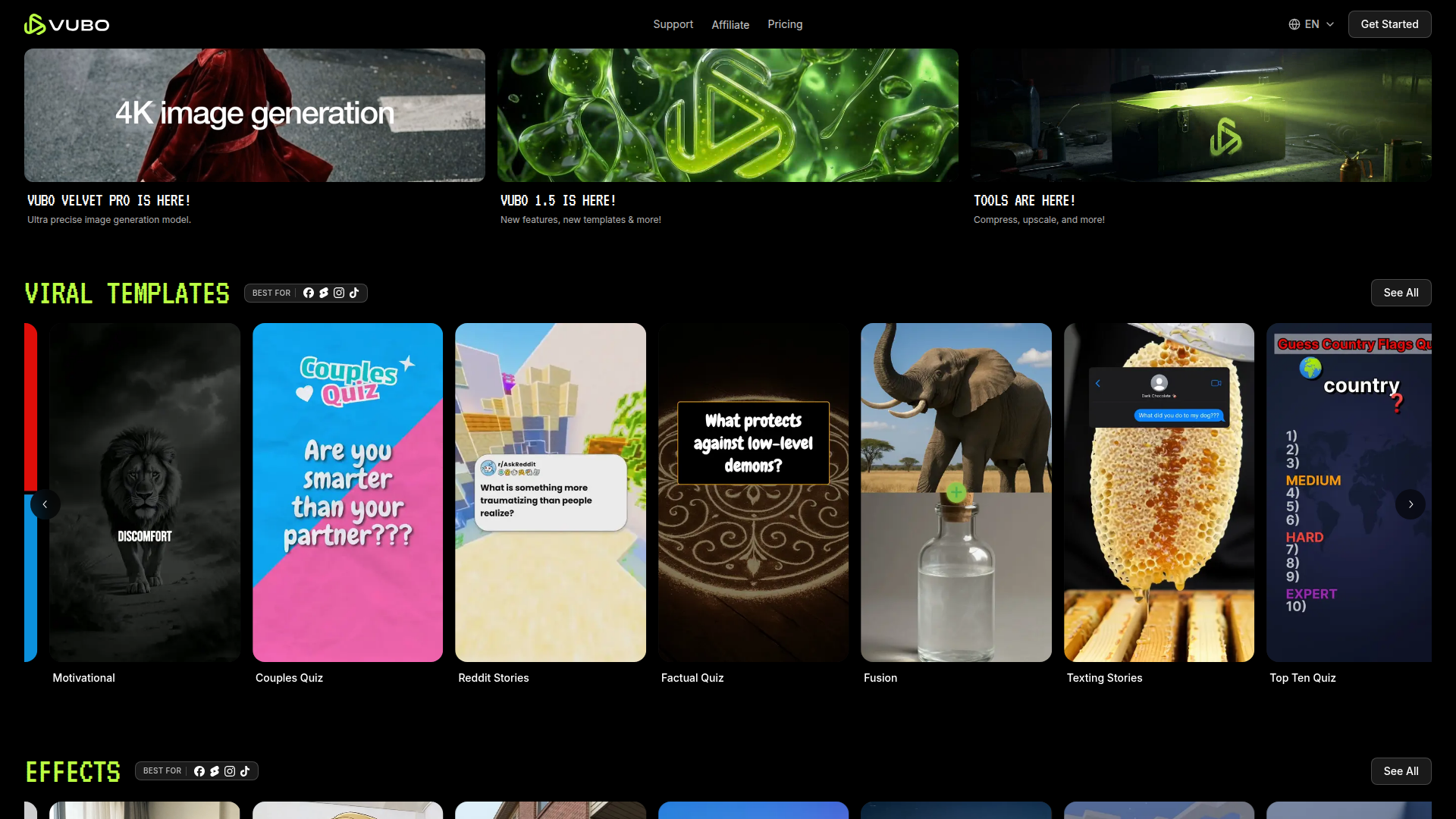 VUBO est une plateforme de création vidéo par IA axée sur la génération rapide de vidéos courtes, « prêtes à devenir virales », à partir de modèles, d’effets et d’outils de génération par IA. Elle semble s’adresser aux créateurs, marketeurs, opérateurs de chaînes sans visage et entreprises qui souhaitent produire du contenu vidéo pour les réseaux sociaux sur des plateformes comme TikTok, YouTube Shorts, Instagram Reels, Facebook Reels et Snapchat Spotlight, sans dépendre de flux de montage traditionnels.