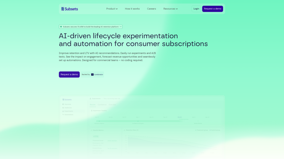 Subsets est une plateforme d’automatisation de la rétention par IA pour les entreprises de l’abonnement grand public. Elle aide les équipes commerciales à prédire les audiences à risque de churn, à exécuter et analyser des tests A/B, et à transformer des stratégies de cycle de vie efficaces en automatisations, sans support technique. Pour les équipes de rétention, de cycle de vie et marketing, elle peut accélérer la prise de décision fondée sur les données en utilisant des données first-party et une IA explicable afin de cibler plus efficacement les abonnés tout au long du cycle de vie de l’abonnement.