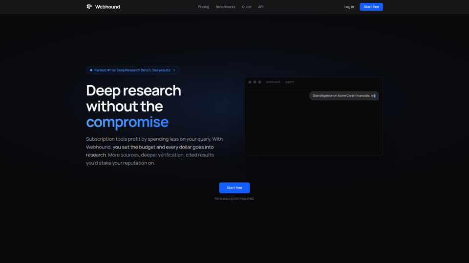 Webhound est un outil autonome de recherche sur le web et d’extraction de données qui aide les chercheurs et les équipes de décision à mener de longues investigations de fond, à vérifier les sources et à exporter des rapports référencés ou des jeux de données structurés. Pour les analystes, les investisseurs, les recruteurs et les équipes de stratégie, il peut améliorer les diligences raisonnables à fort enjeu et les études de marché en automatisant la recherche web en plusieurs étapes tout en maintenant des affirmations étayées par des sources et vérifiables.