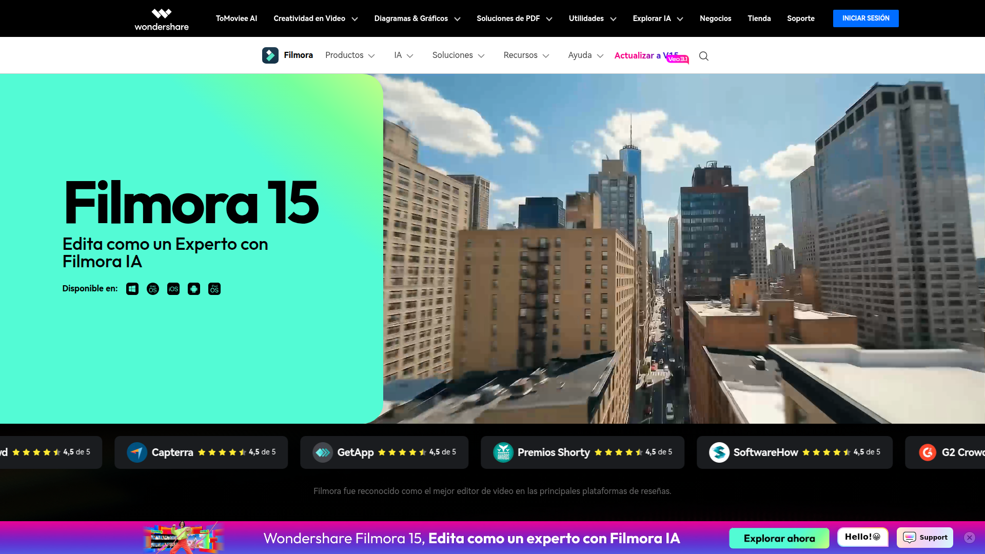 Wondershare Filmora は、デスクトップ、モバイル、タブレット向けの AI ベース動画編集製品です。標準的なタイムライン編集と、AI によるコンテンツ生成、強化、仕上げツールを組み合わせたいクリエイター向けの、直感的なエディターとして位置づけられています。