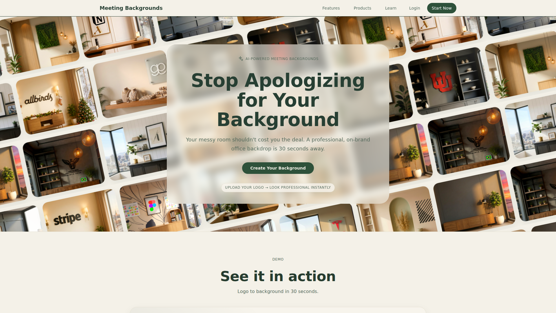 Meeting Backgrounds は、プロフェッショナルなバーチャル会議用背景を作成するための AI 搭載ツールです。営業チーム、採用担当者、コンサルタント、プロダクト職、学生、その他、ビデオ通話に多くの時間を費やし、画面上でより洗練された印象を与えたいナレッジワーカー向けのサービスと考えられます。