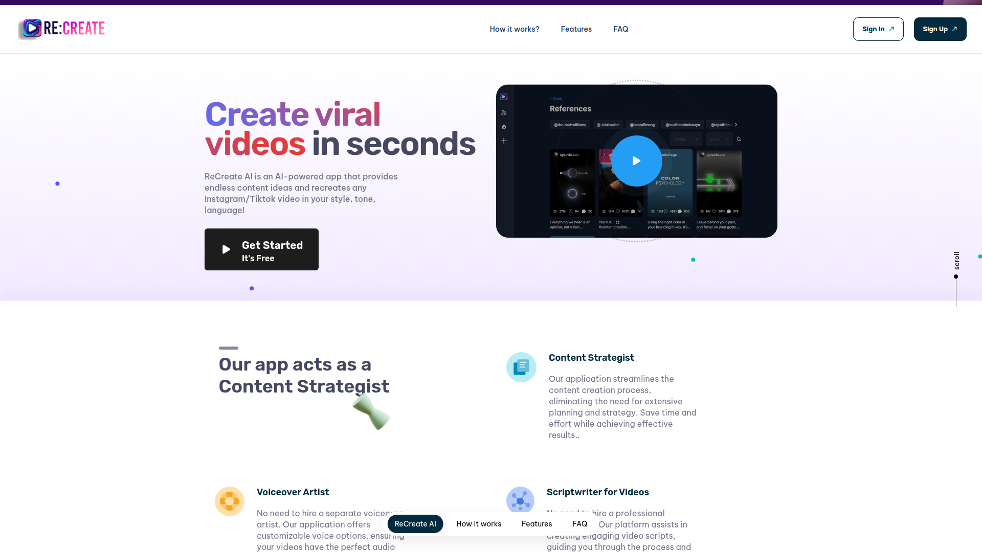 RE:Create AI ã¯ãTikTokãInstagramãYouTubeãYouTube Shorts ãªã©ã®ãã©ãããã©ãŒã ã§é ä¿¡ãããœãŒã·ã£ã«ã¡ãã£ã¢åç»å¶äœè ãã¯ãªãšã€ã¿ãŒãããŒã±ã¿ãŒã代çåºãäŒæ¥åãã®ãAI ãæŽ»çšããã³ã³ãã³ãäœæããŒã«ã§ããäž»ãªçšéã¯ãã³ã³ãã³ãã®åèäºäŸãèŠã€ããããšãã¯ãªãšã€ã¿ãŒãã€ã³ãã«ãšã³ãµãŒã远跡ããããšãæ¢åã®çå°ºåç»ã¢ã€ãã¢ãããŠãŒã¶ãŒèªèº«ã®ã¹ã¿ã€ã«ãããŒã³ãèšèªã«åãããæ°ããã¹ã¯ãªãããžå€æããããšã§ãã
