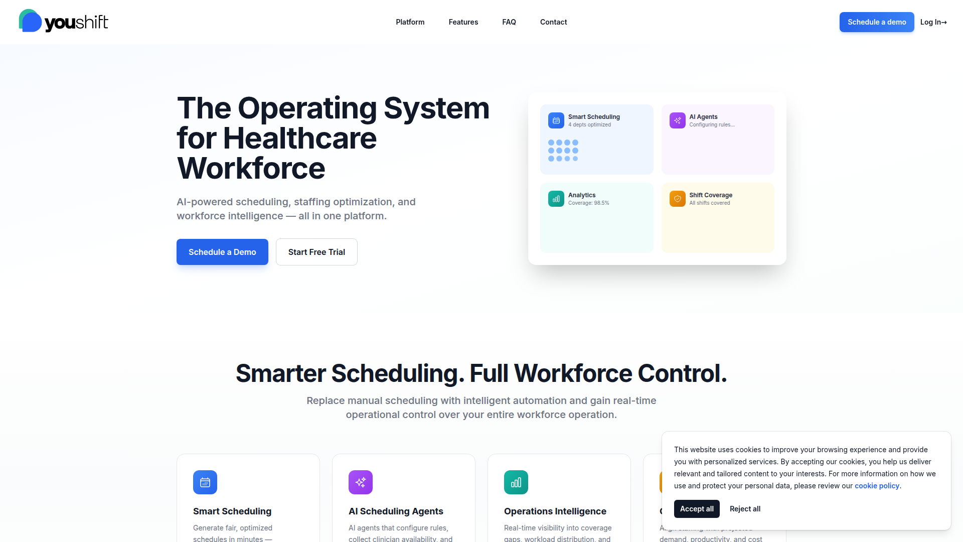 YouShiftは、臨床医のスケジューリング、人員配置の最適化、ワークフォースインテリジェンスに重点を置いた医療人材管理プラットフォームです。手作業によるスケジューリングやスプレッドシートベースの調整を、より自動化され一元化された運用システムに置き換える必要がある病院や医師グループ向けに設計されています。