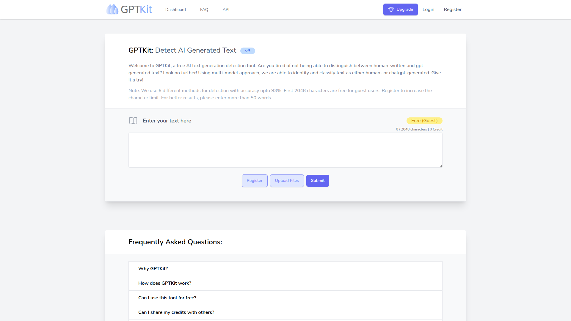 - 文件上传输入选项 — 用户不仅可以粘贴文本,还可以上传文件,这对于检查草稿或已保存文档非常实用。