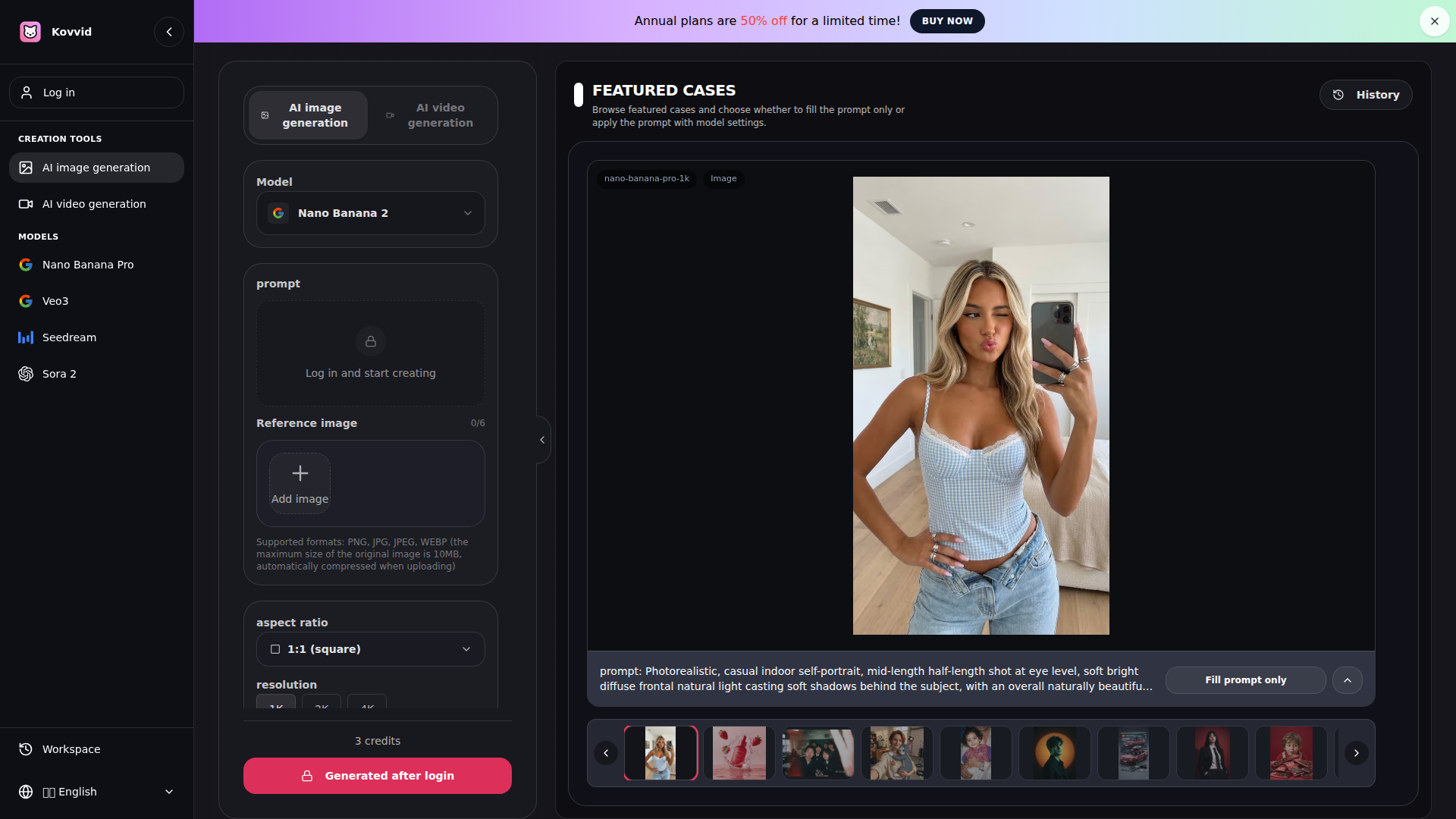 免费 AI 图像生成器 - Nano Banana Pro、Seedream 4.5 | Kovvid AI | Kovvid
