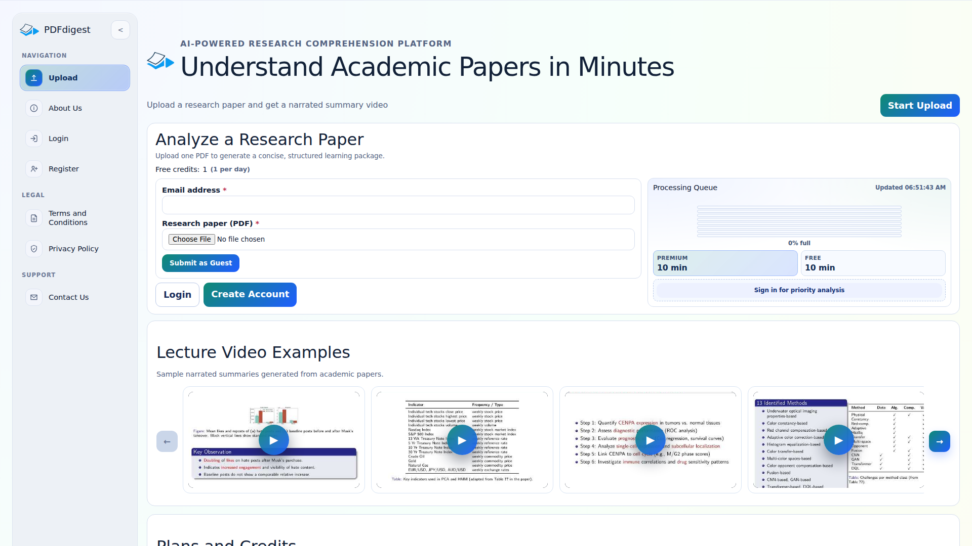 PDFdigest 是一个由 AI 驱动的科研理解平台,专注于帮助人们更快地读懂学术论文。其核心流程很简单:上传一篇 PDF 格式的研究论文,即可获得一份简明、结构化的学习材料包,其中包括一个带讲解的摘要视频。