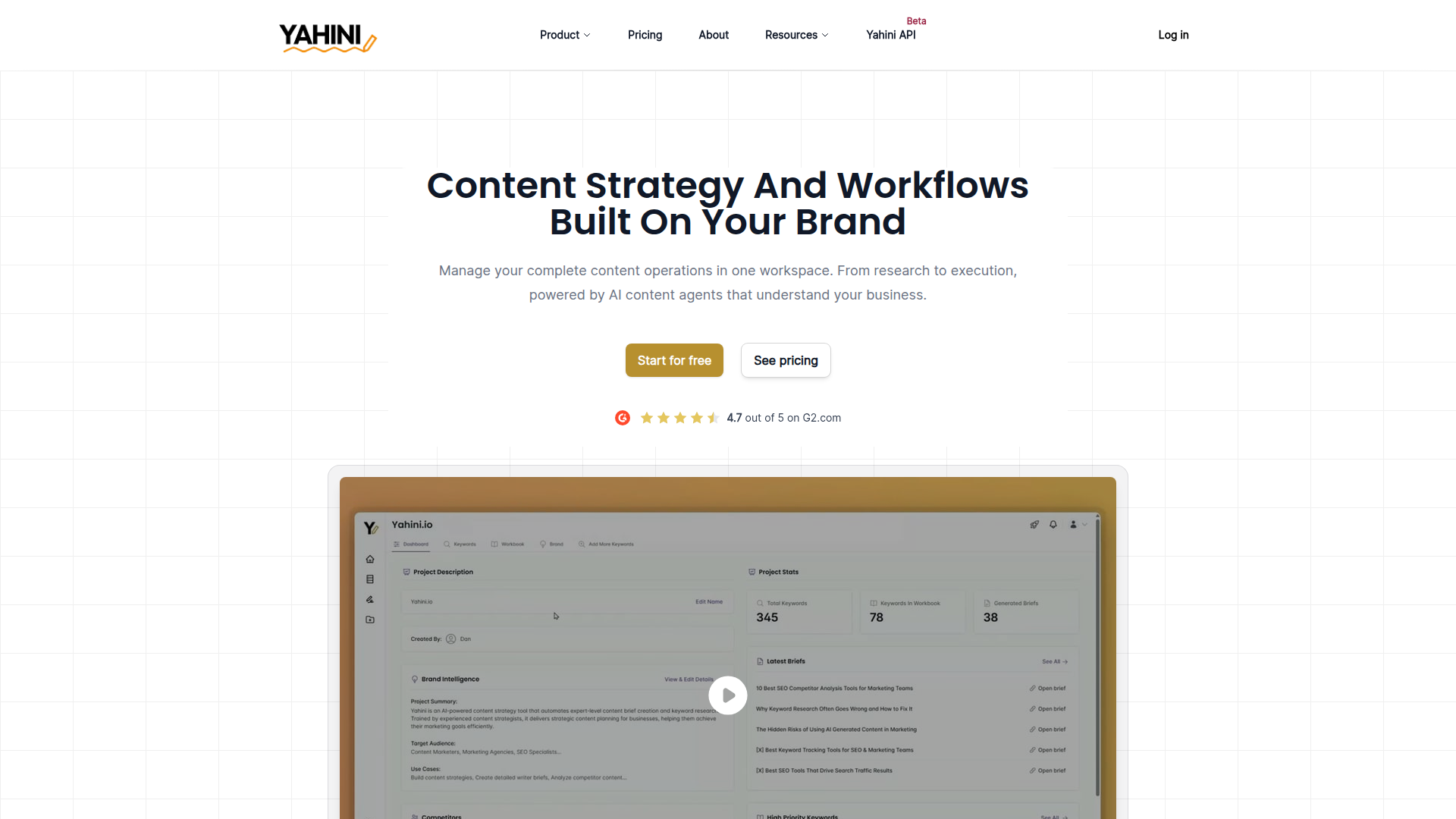 Yahini 是一个基于 AI 的内容运营平台,将内容策略、研究、Brief 编写和执行跟踪整合到同一个工作空间中。它围绕一个“品牌智能”层构建:该层可从网站 URL 学习一家公司的产品、功能、客户、定位、使用场景和痛点,并在其内容工作流中持续使用这些上下文信息。